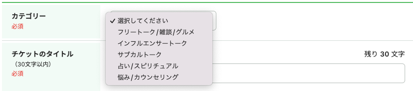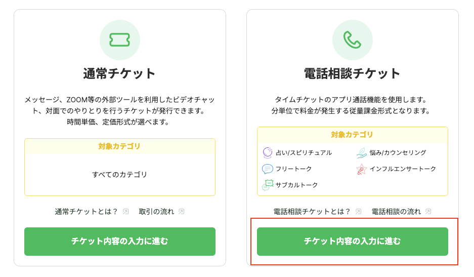 電話相談チケットでは一部のカテゴリのみチケット発行が可能です。
