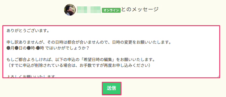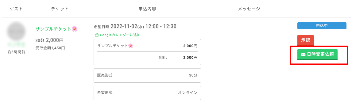 ホストからゲストへの日時変更依頼の送り方(販売者→購入者)